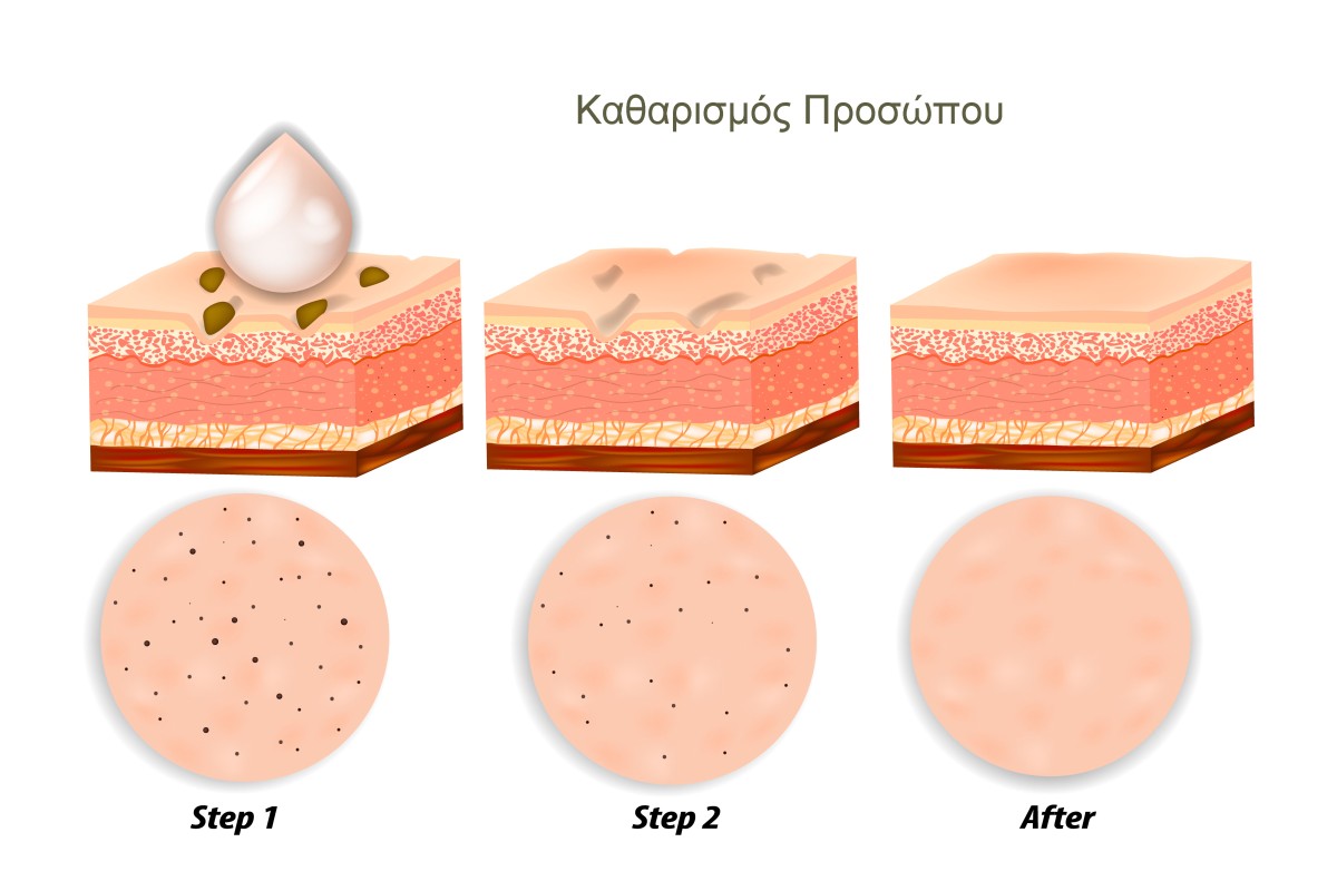 Αρχικά το δέρμα θα καθαριστεί με τα σωστά προϊόντα. Σε αυτή τη φάση τα προϊόντα απολέπισης θα προετοιμάσουν την επιδερμίδα να δεχθεί τον βαθύ καθαρισμό της.